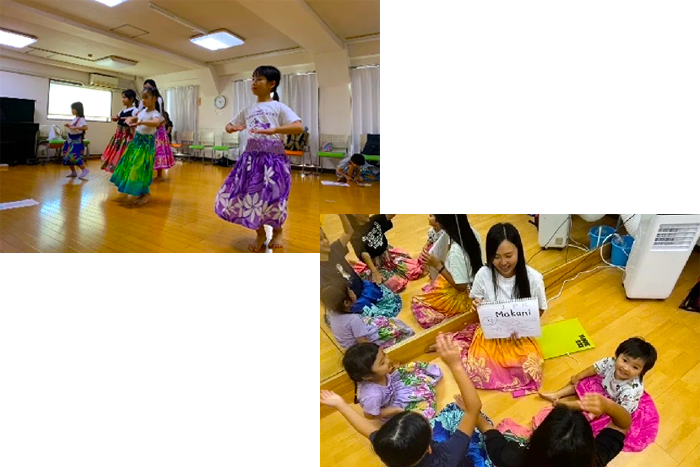フラダンスは『手話ダンス』とも呼ばれ、表現力を高めながら、気持ちが通じ合うコミュニケーションを育むことができます。踊りを通して自然に心が通い合い、言葉を超えたつながりを感じられるのがフラダンスの魅力です。